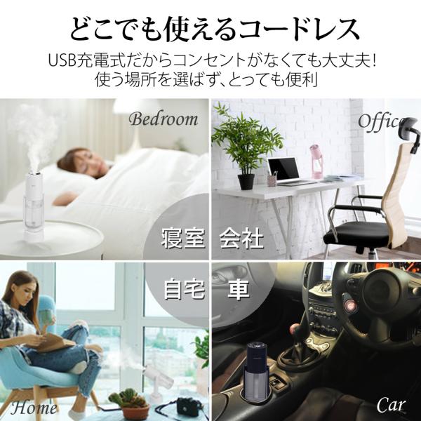 コンパクトで多機能 USB充電式 マイナスイオン 超音波式加湿器