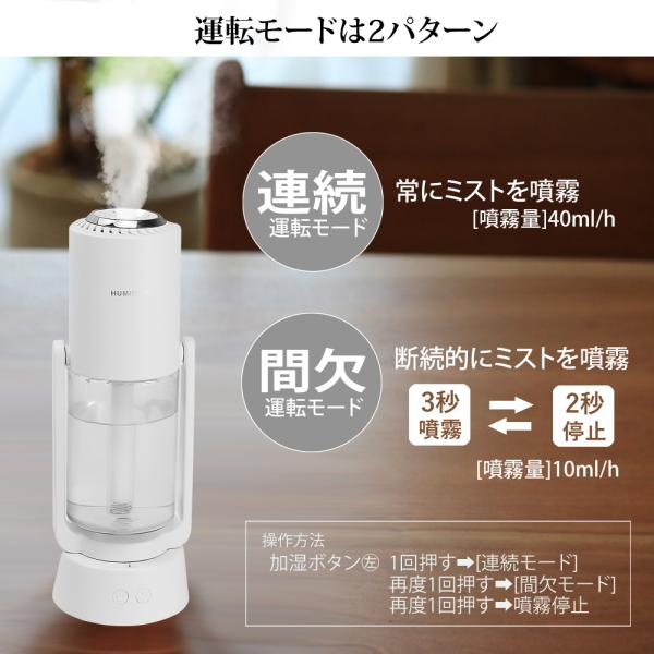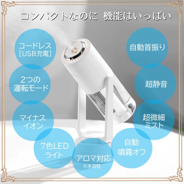 加湿器 小型 自動首振り コンパクト 卓上 自動停止機能 超音波式 アロマ対応 マイナスイオン 充電式 次亜塩素酸水 空焚き防止 乾燥防止