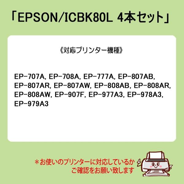 ICBK80L ブラック プリンターインク 4本セット エプソン EPSON インク とうもろこし 互換インクカートリッジ ICBK80L 黒 爆買