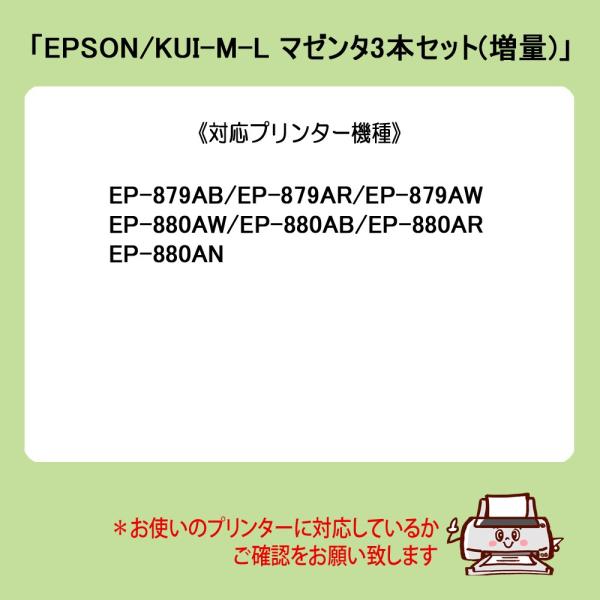 【商品内容】KUI-M-L(マゼンタ)×3本 EPSON エプソン 互換インク (新品)クマノミ