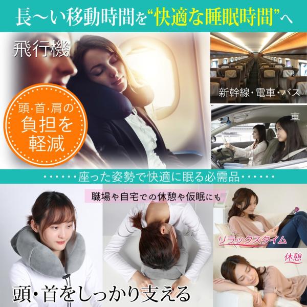 【移動時の快適睡眠をサポート】仕事や旅行など乗り物での移動時間を快適な睡眠時間に変えてくれる便利な首用トラベルピロー。頭と首をしっかりと支え、移動中座った状態での快適な睡眠姿勢をサポートします。
