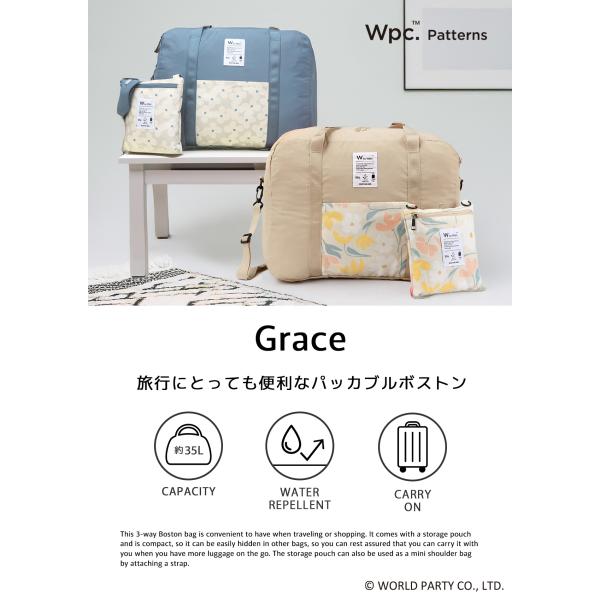 最大53% 4/17から Wpc. Patterns ダブリュピーシー 3WAYボストンバッグ レディース ブランド 35L 軽量 撥水 旅行 パッカブル ダッフルバッグ グラース 31029