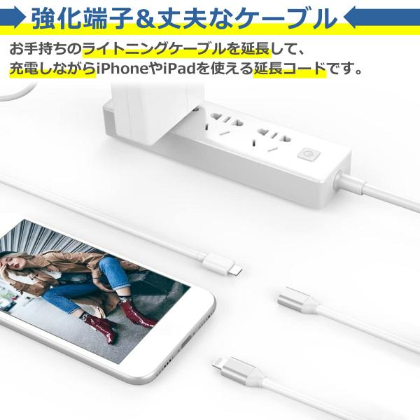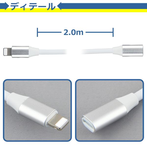 iPhone 延長 ケーブル 2m オス メス コード アダプタ コネクタ iPhone iPad iPod Apple Pencil 対応 急速 充電 データ 転送 同期 オーディオ接続