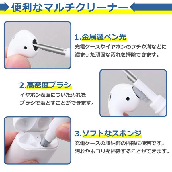 3 in 1の多機能クリーナーで、イヤホンの細部まで徹底的に掃除します。