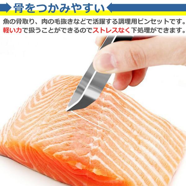 魚の骨取り、肉の毛抜きなどで活躍する調理用ピンセットです。