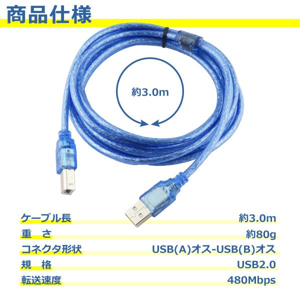 プリンターケーブル Canon EPSON brother 高耐久 断線防止 USBケーブル 充電器 ケーブル 3m