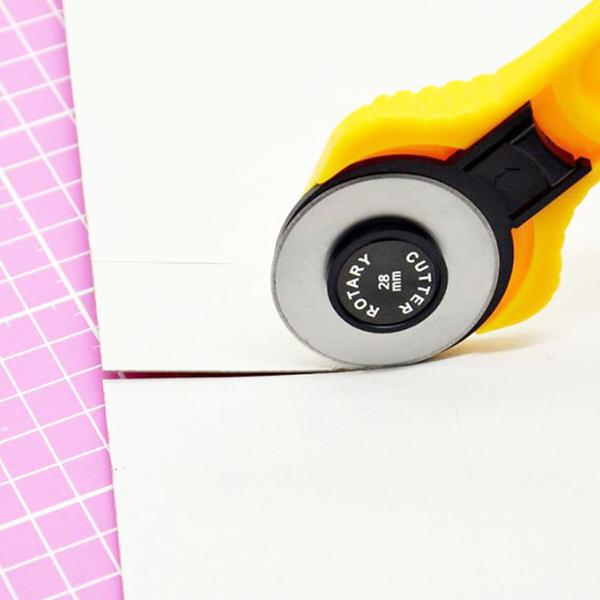 直径28mmの円形刃が特徴で、布から紙、さらには薄手のゴムシートやフィルムなど、様々な素材を精密かつスムーズにカットすることができます。