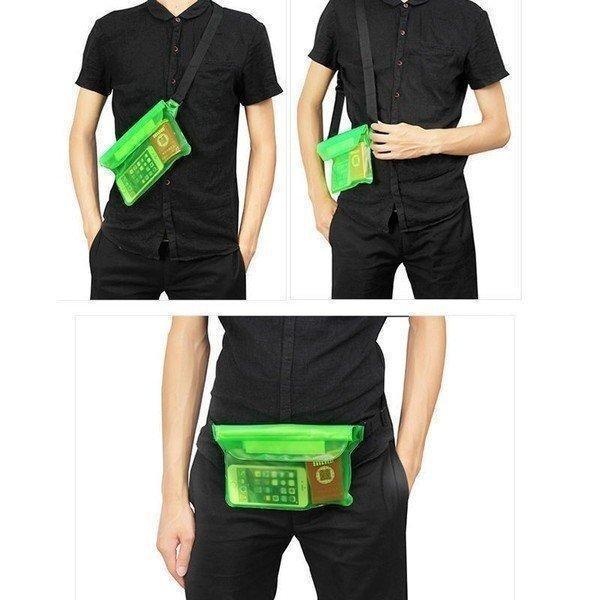 PVC素材で-37℃の低温耐久設計!海やプール、お風呂場で大活躍する用防水ウエストポーチです!肩からかけられる大容量防水ボーチ。