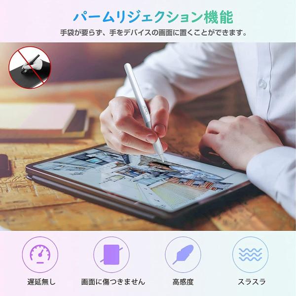 タッチペン iPad対応 ペンシル Ciscle 傾き感知機能 パームリジェクション機能 磁気吸着 極細 高精度 5分自動オフ