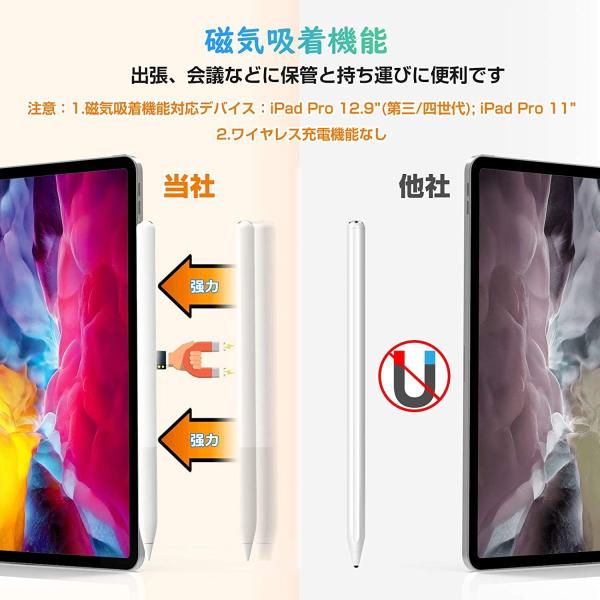 【誤作動防止&磁気吸着機能】iPad ペンシルはパームリジェクション機能が搭載しており、手袋がいらず、手が画面に触れても誤作動がなく、絵描き、メモ取り、ゲームなどに途切れやズレなく、狙ったところにストレスなく書けます。iPadペンにマグネット内蔵され、出張、会議などに保管と持ち運びに便利です。*ご注意:磁気吸着機能対応の機種: iPad Pro 11インチ/ 12.9インチ(第三/四世代)のみ。