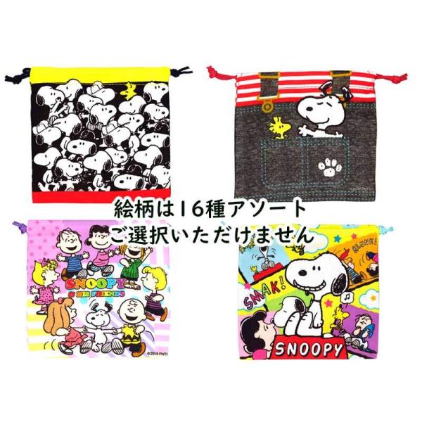 スヌーピーの巾着袋にお菓子をたっぷり詰め合わせました。16種アソート色々取り合わせてのお届けとなります。