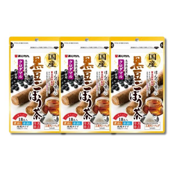 【南雲先生監修!】あじかんの黒豆ごぼう茶(国産)18包入×3袋セット
