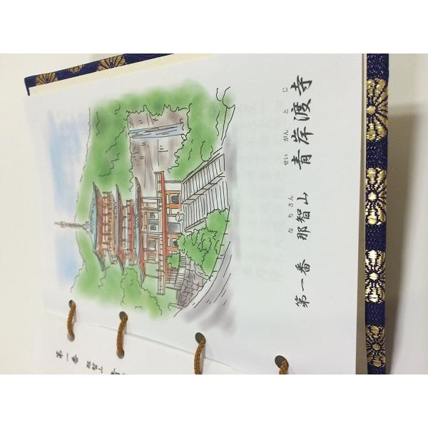【西国三十三ヶ所】西国三十三所観音霊場納経帳 寺院水彩画入り(紺色)【お遍路用品/巡礼用品】