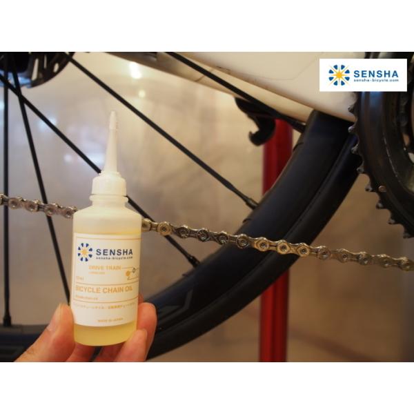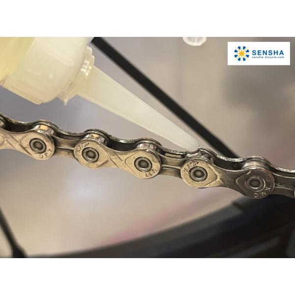 ■ 使用方法 【1】チェーンの汚れをあらかじめ当店ドライブクリンなどで洗浄します。 【2】チェーンに付着した水分をクロス等で十分に拭き取ります。 【3】チェーン1コマにつき本液を1〜2滴注油します。 【4】チェーンのコマすべてに注油し終えたら、クランクを10回転ほどさせてからクロスでチェーンを軽く拭き上げて完了です。