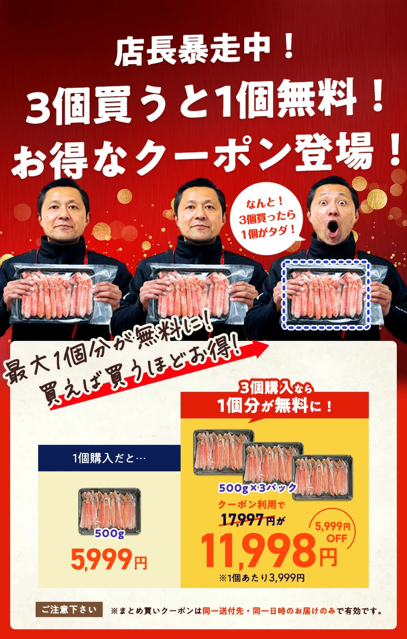 特大“生”本ズワイ蟹“太脚棒肉”フルポーション 15本 500g 爆買