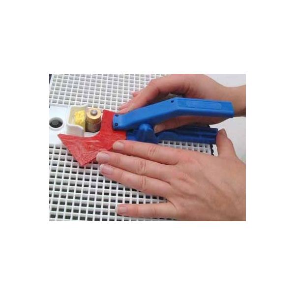 ステンドグラスのガラスピースをはさみ、ルーター作業をします。強い力で小さなピースでもしっかり保持します。
