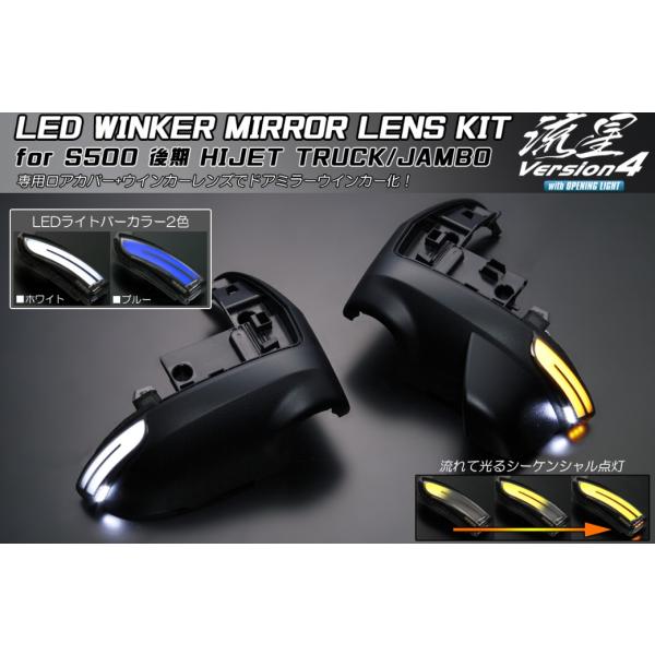 [オープニングライト機能搭載 流星Ver.4] LEDウインカーミラーレンズキット S500系ハイゼットトラック アトレーS700 ライツ(REIZ)