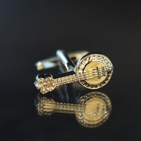 カフスボタン 結婚式 ビジネス スーツ シャツ シルバー ブラック モチーフ シンプル シック 高級感 バンジョー