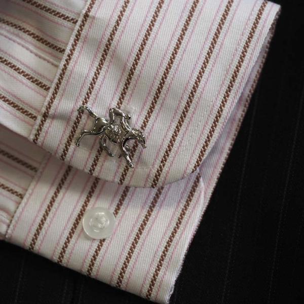 カフスボタン 結婚式 ビジネス スーツ シャツ シルバー モチーフ 高級感 ジョッキー 競走馬