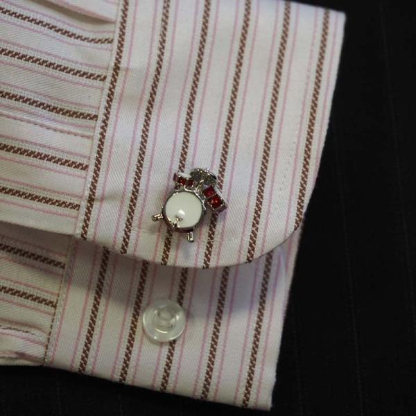 カフスボタン 結婚式 ビジネス スーツ シャツ シルバー ブラック モチーフ シンプル シック 高級感 ドラム 音楽