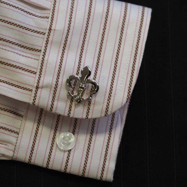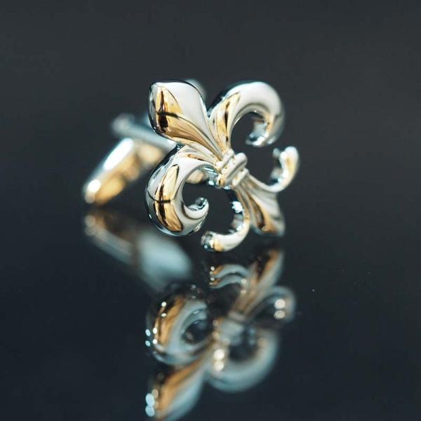 カフスボタン 結婚式 ビジネス スーツ シャツ シルバー ブラック モチーフ シンプル 高級感 ユリの紋章 フレアー