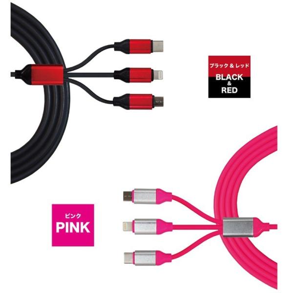 充電ケーブル 3in1高速充電ケーブル スマホ iPhone Android Lightning MicroUSB USB Type-C z1826