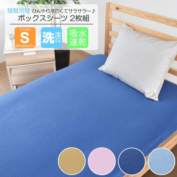 接触冷感 ボックスシーツ シングルサイズ 選べる2枚セット 敷布団カバー 夏 市松模様 ストレッチ 伸びる ひんやり 吸水速乾 丸洗い ひんやり 送料無料