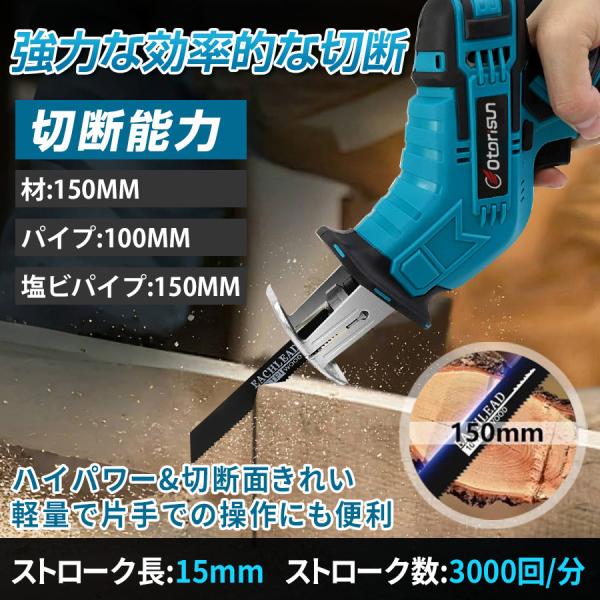 【正規品】 レシプロソー 充電式 電動ノコギリ 電動のこぎり 小型チェンソー 21V マキタ バッテリー互換対応 高速切断 軽量 女性 工具 ブレード4本付き