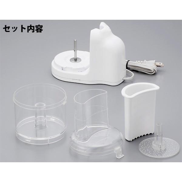 ・定格:100V 50/60Hz・消費電力:20W・本体サイズ:17×11×21cm 約770g・電源コード:約1.3m・材質:本体/ABS樹脂、フタ・容器/SAN(AS)樹脂、押棒・刃/ABS樹脂・定格時間:3分・容器容量:400ml