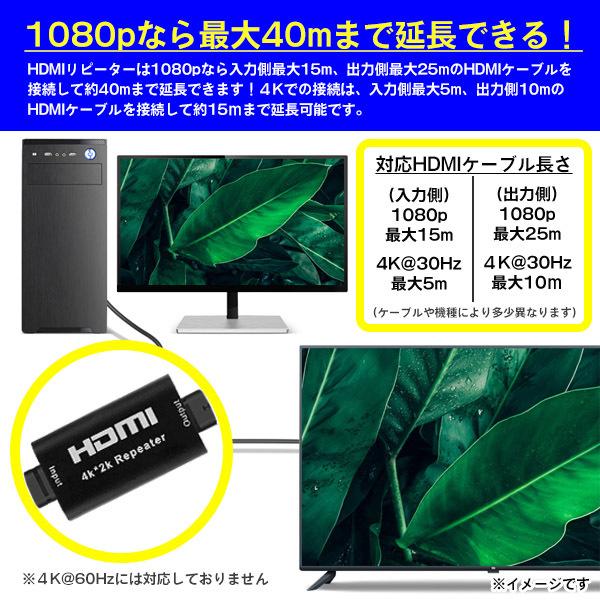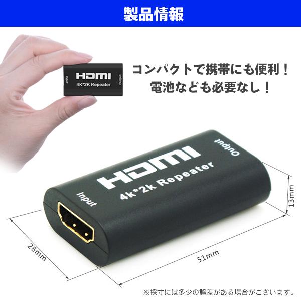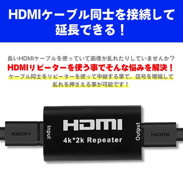 HDMI リピーター 4K 2K対応 延長 中継 アダプタ 1080P 4K HDCP 電源不要 モニター テレビ 信号 増幅