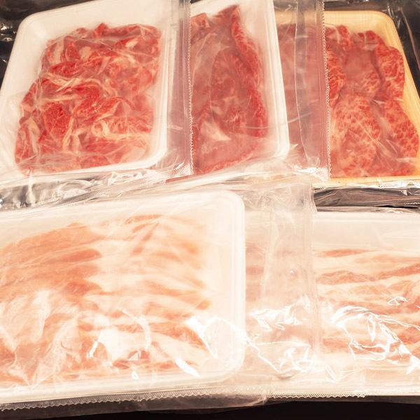 ■内容:牛上すき焼き(300g)、牛赤身すき焼き(300g)、牛切り落とし(300g)、豚ローススライス(300g)、豚バラスライス(300g)