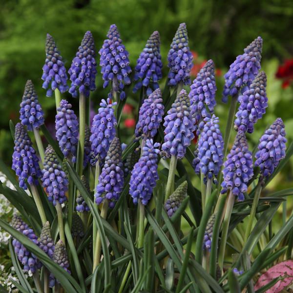 葡萄の果実のような釣鐘形の小さな花を咲かせます。丈夫で育てやすくガーデニング初心者におすすめの球根です。