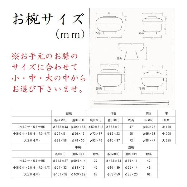 ※お椀セットのサイズは別表を参照ください。
