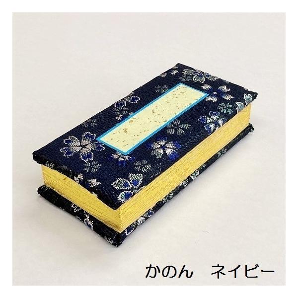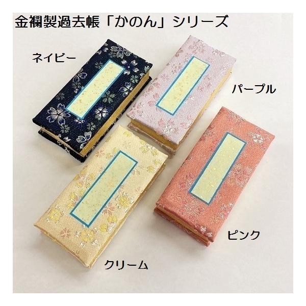 過去帳 金襴 鳥の子紙 かのん 日付入 4.5寸 ネービー・クリーム