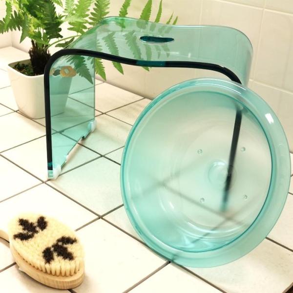 キャンディ アクリルバスチェアM&ウォッシュボールセット Mサイズ (お風呂椅子 お風呂イス バスチェア 風呂桶 洗面器)クリア/ブラウン/ライトピ