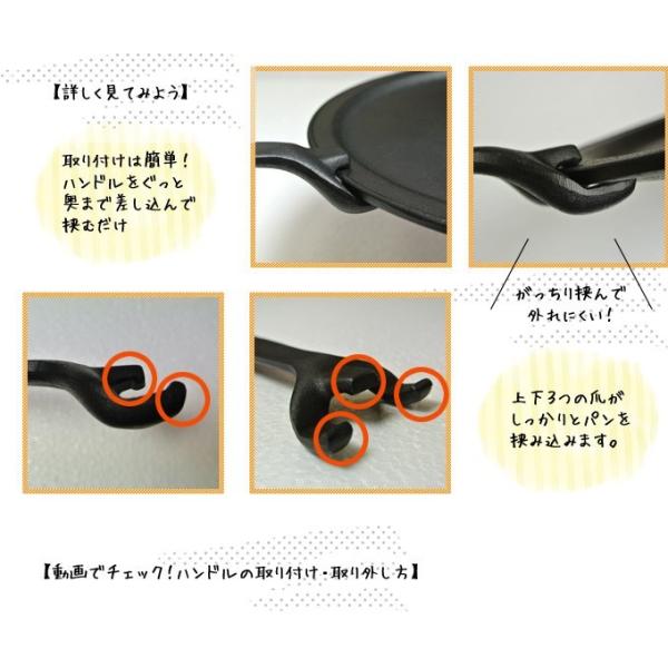 ・ハンドルが取外せるので薪ストーブ炉内で調理がしやすい!