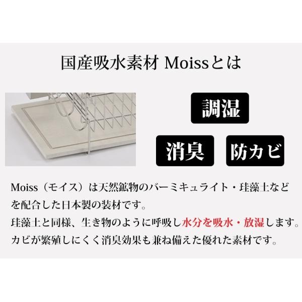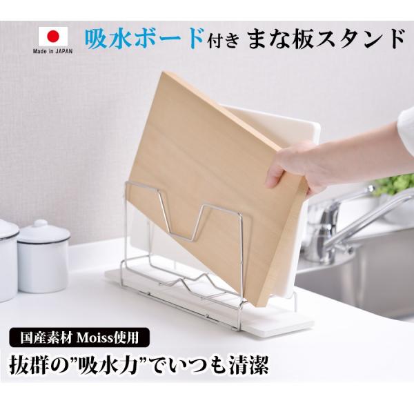 珪藻土と同様の特徴を持つ、国産素材Moissを使用したまな板スタンド。