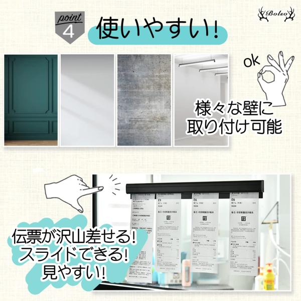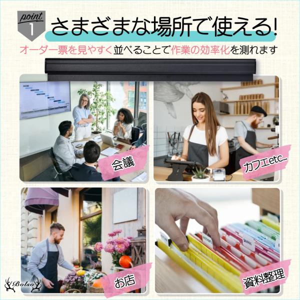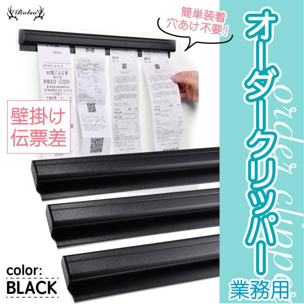 BOLSO オーダークリッパー 業務用 壁掛け 伝票 伝票差し オーダー ホルダー 穴あけ不要 ブラック 70cm