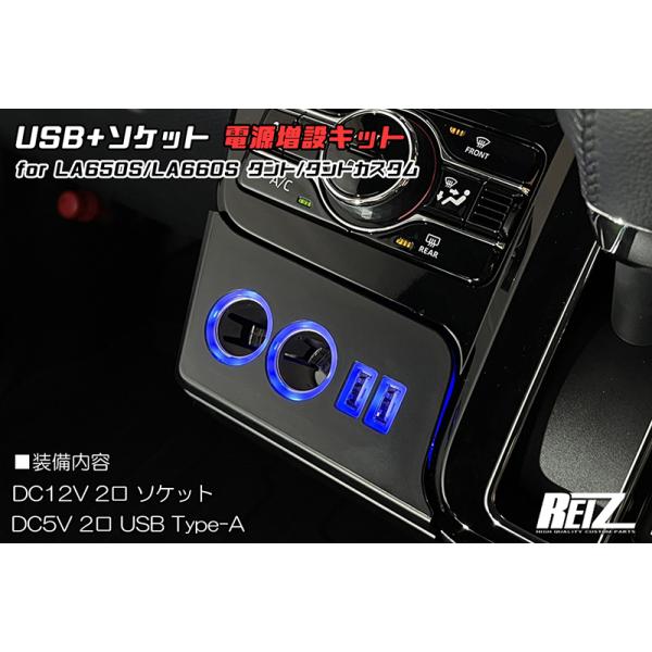 LA650S/LA660S タント/タントカスタム 前期 専用 USB+ソケット電源増設キット 2口ソケット+2口USB イルミ付 同型シフォン