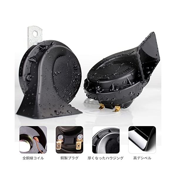 FARBINコンパクトホーン12 Vクラクション2音防水自動車ホーン電動カタツムリホーンキットは、12 V車両に適しています (12V, 黒いのペアホ