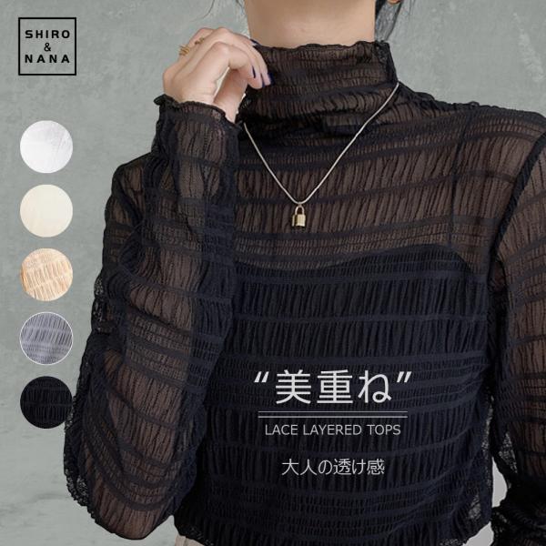 シアートップス シアー トップス 長袖 ハイネック レース カットソーシアーTシャツ 薄手 インナー ロンT おしゃれ ハイネック レースインナー 長袖 透け 重ね着