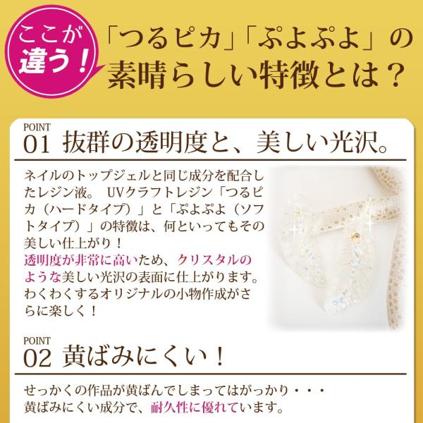 UVクラフトレジン「つるピカ(ハード)」「ぷよぷよ(ソフト)」。