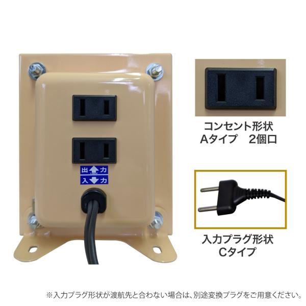 ※1時間以上継続してご使用の場合には、変圧器の信頼性と安全確保のため使用する電気製品の消費電力値の1.25倍以上の容量を持つ変圧器をお選びください。