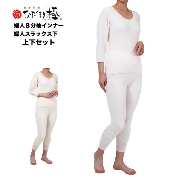 ひだまり 極 きわみ 三重身頃&二重袖 婦人 8分袖インナー + スラックス下 上下セット ピーチ/ベージュ 日本製 S/M/L/LL