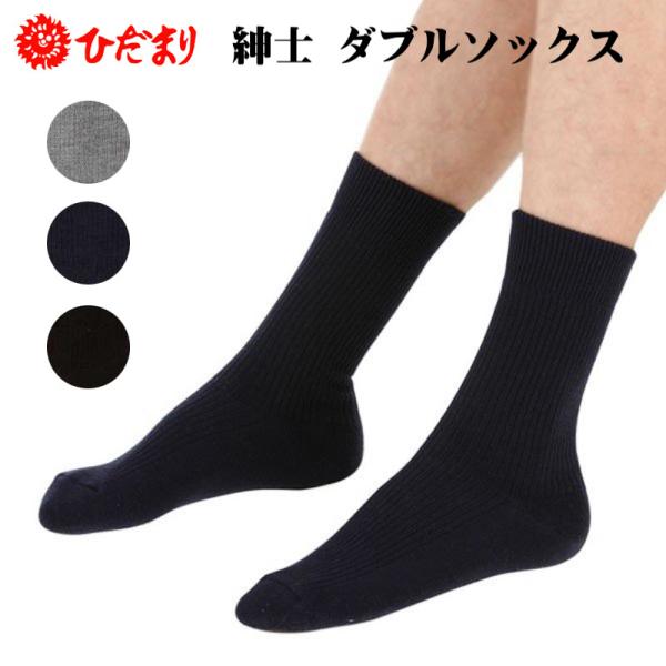 ひだまり 紳士 ダブルソックス グレー/コン/クロ P-60 日本製