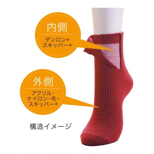 ひだまり 婦人 ダブルソックス グレー/エンジ/クロ P-82 日本製