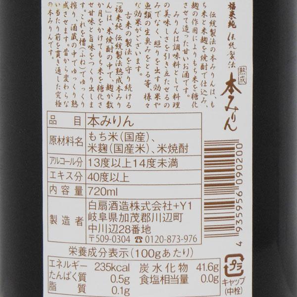 福来純 伝統製法熟成本みりん(720ml) 白扇酒造