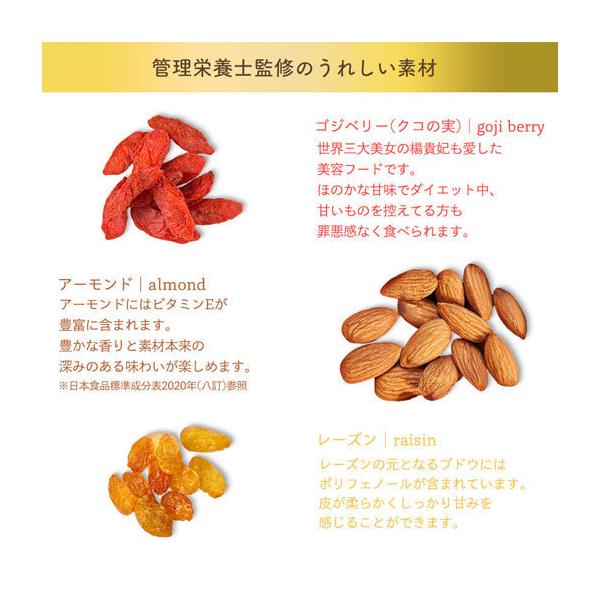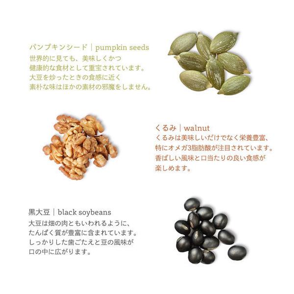 原材料:くるみ、サルタナレーズン、アーモンド、黒大豆、クコの実、かぼちゃの種、植物油