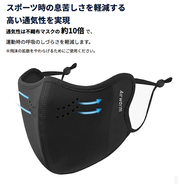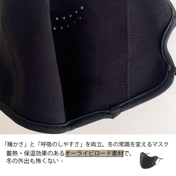 マスクの内側に湿気や汗を熱に変える保温機能が備わった素材を使用。