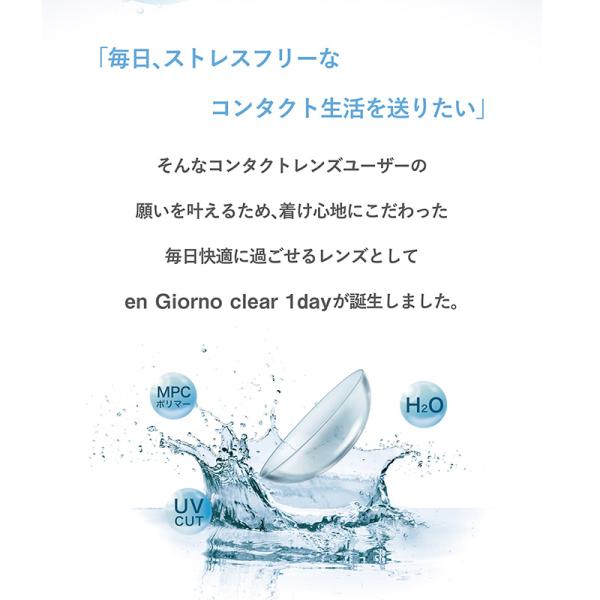 そんなコンタクトレンズユーザーの願いを叶えるため、付け心地にこだわった、毎日快適に過ごせるレンズとしてアンジョルノクリアワンデーが誕生!